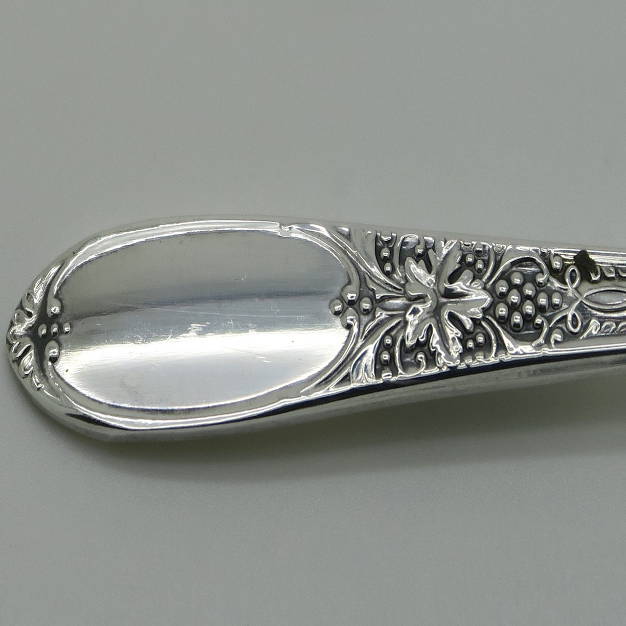 Burgundy aka Champagne was introduced in 1934 by Wm Rogers / International. The mirror like framed oval design at the top leads to geometric work at the center of the pattern. I think the silverware pattern would ride a comfortable line between classic and modern in today's dining decor.