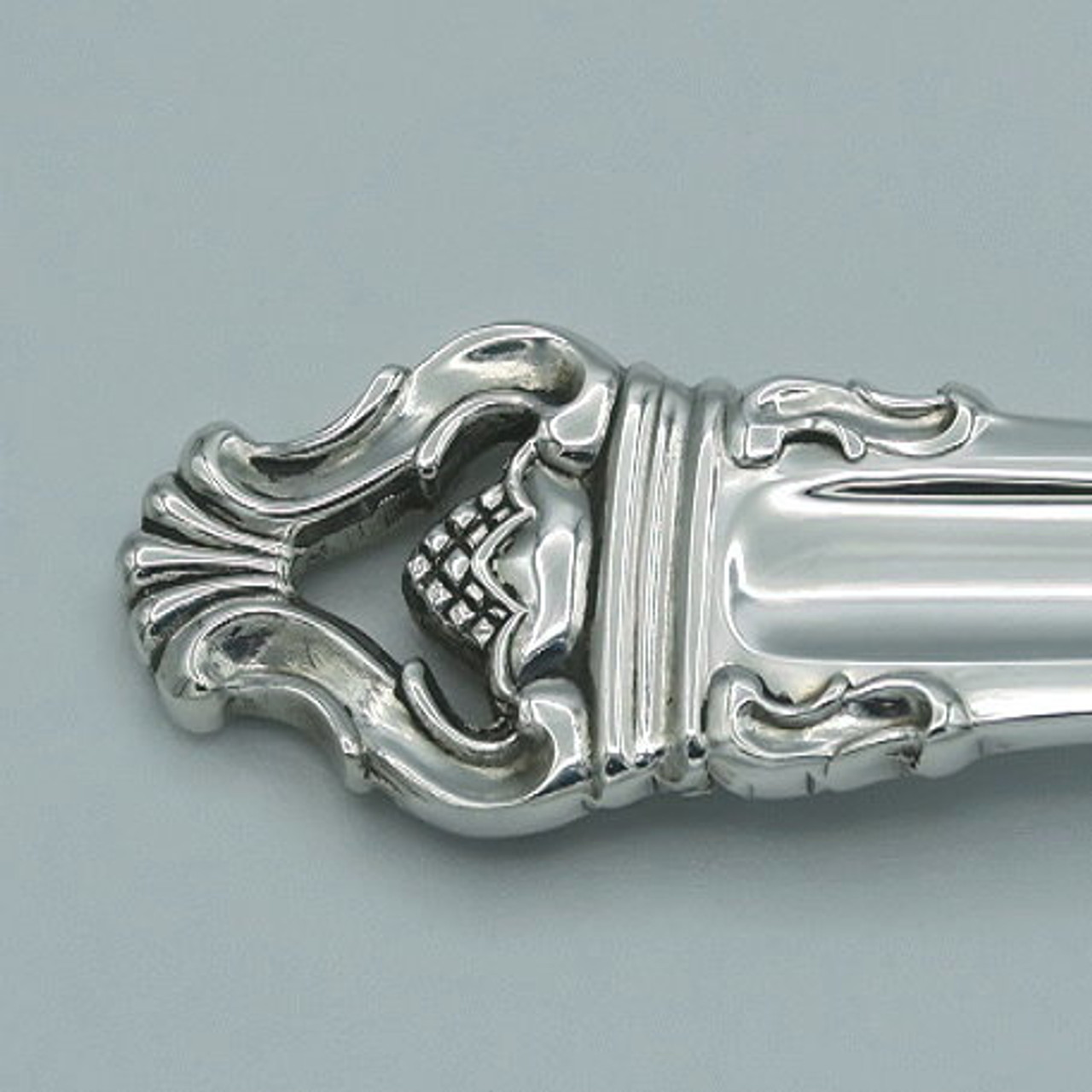 Emperor silver plate pattern by Reed & Barton was introduced in 1969 and discontinued in 2005. The pattern is royal indeed with the top of the crested pattern accented by lines and scrolls. The silverware pattern is a design that feels substantial holding it in your hand. White Water Antiques has many dining decor choices in silver plate as well as sterling.