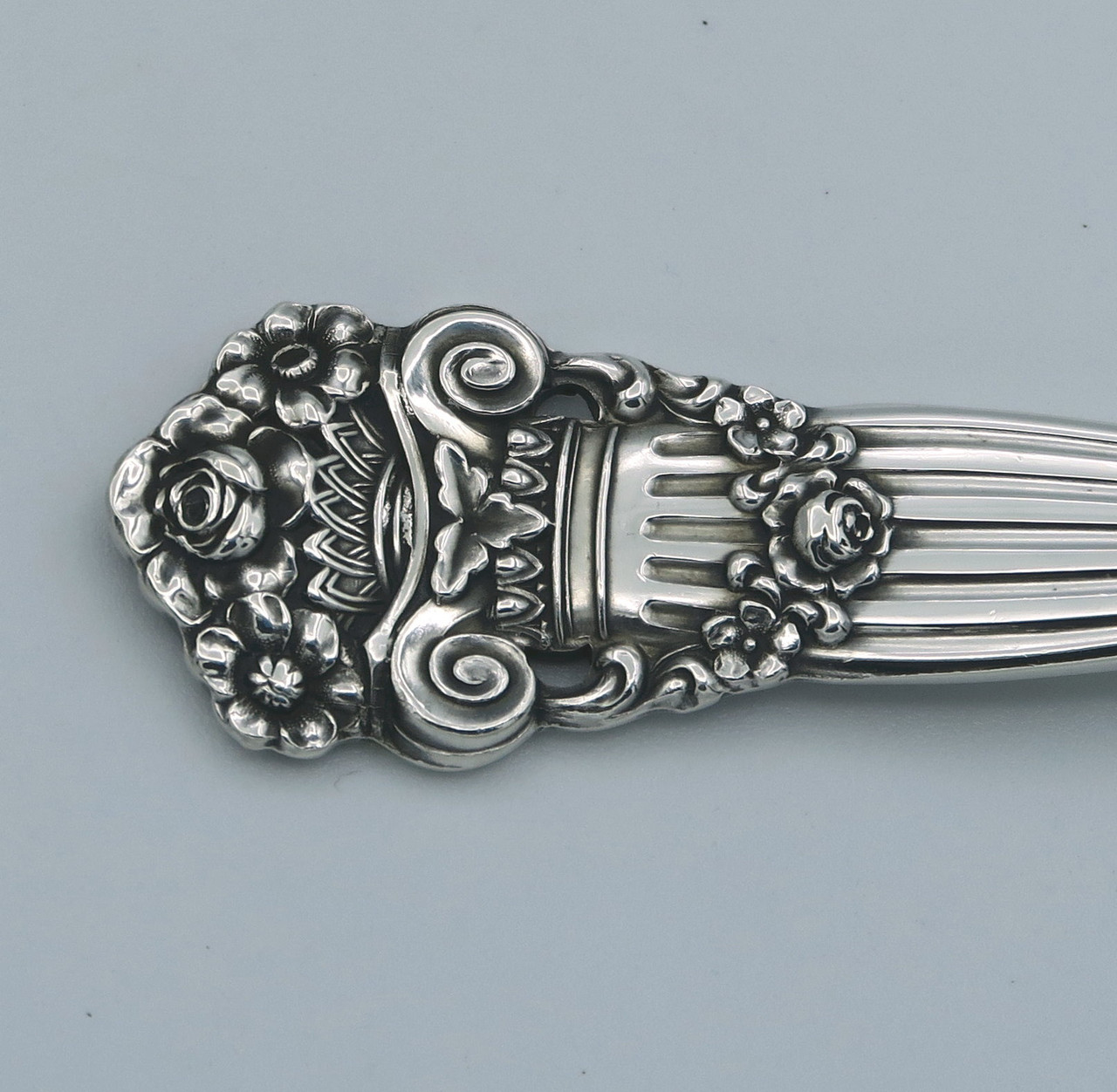 Georgian by Towle sterling silver flatware pattern was designed by George P. Tilton in 1898. The roses atop the columns bring back historic and classic times. The quality and workmanship of this silverware pattern is asounding. The style will certainly blend with any traditional dining setting. White Water Antiques is pround to offer this antique pattern as well as many others in sterling and silverplate.