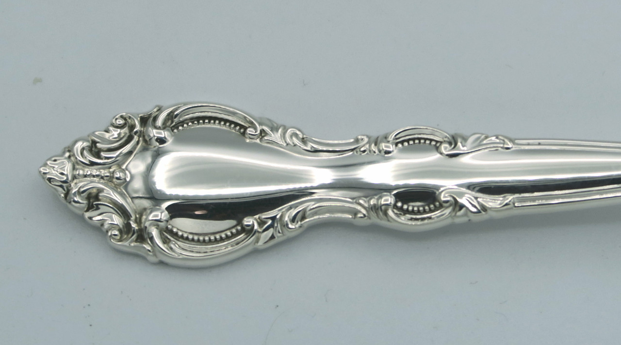 Malvern created by Lunt in 1970. The pattern has the classic look of sterling with a drop of 1970 artistic flare. The flatware has that good feel in your hand that says quality. The style will pair with many of todays current dining choices. White Water Antiques brings previously owned pieces to market that are then buffed and polished prior to shipment. We do guarantee your satisfaction on any of our products.