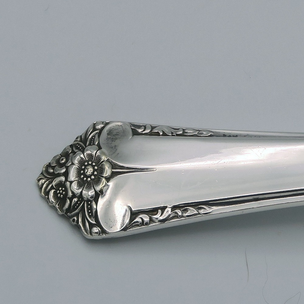 The Starlight silver plate pattern introduced in 1950 was created by Rogers & Bro International. The true mid-century design creates a raised flower blossom at the top surrounded by two additional blossoms. That design is highlighted with swirls underneath that gives the impression of a bright star. This flatware design will certainly go with modern, Danish and other artistic décor.