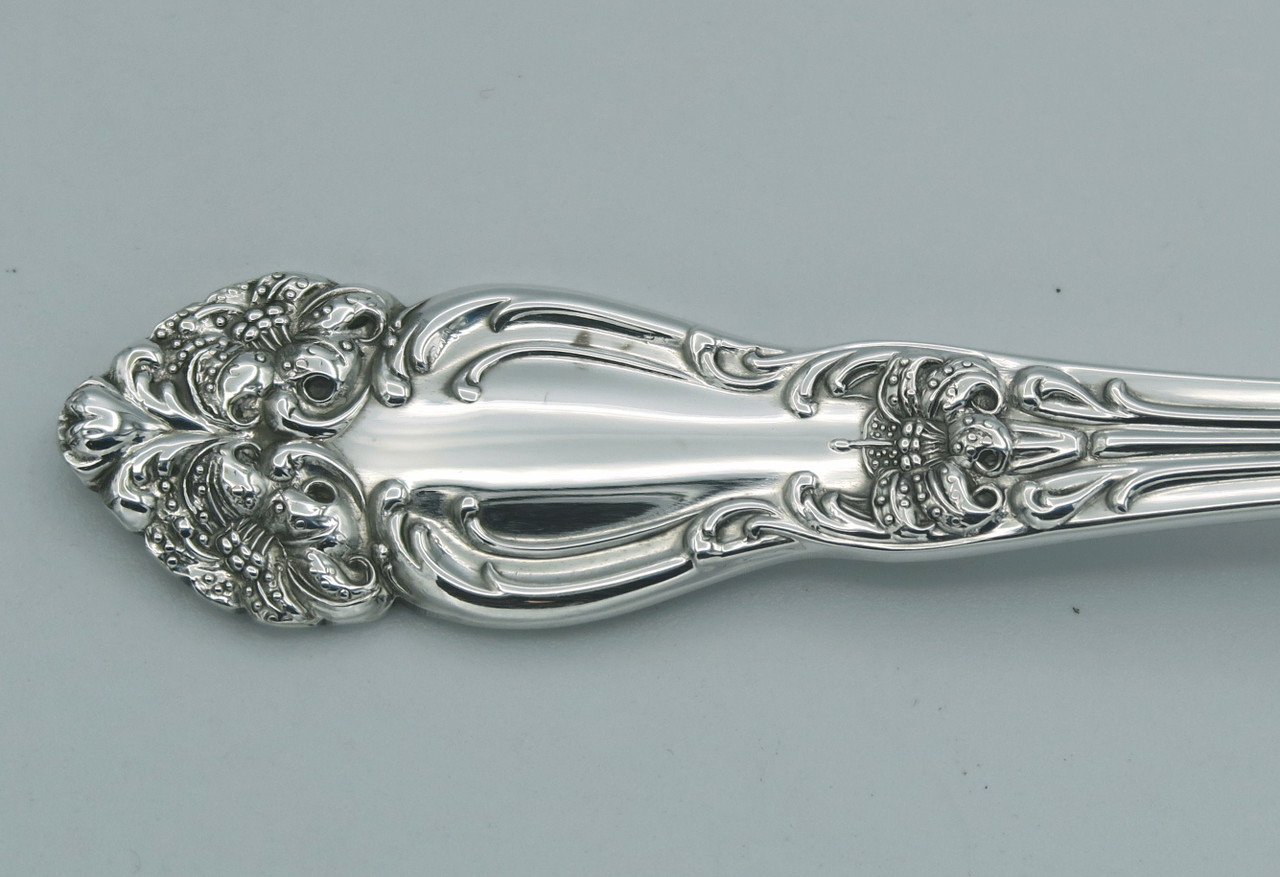Tiger Lily aka Festivity silver plate pattern by Reed and Barton was introduced in 1901. As the name indicates the design revolves around a beautiful tiger lily on the handle. The name became Festivity in 1945. Production of this silverplate pattern was discontinued in 1989 and the pattern is still in demand. The style certainly would enhance any traditional dining décor.